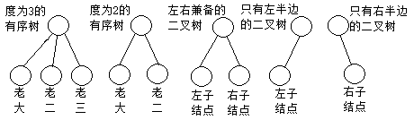 至于为何二叉树不是度为2的一般树,在于子结点的顺序问题。对于无序树,如果一个结点有多个子结点,则这两个子结点一定是在概念上不能相互区分的,也就不能做出相应的排序。而有序树中如果一个结点有多个子结点,那么这些互为兄弟的子结点在概念上相互之间是不一样的,是可以并已经排序了的。有序树中的多个子结点会有老大,老二等,但是如果只有一个子结点,那么这个子结点就一定是老大结点。这样一来,度为2的一般有序树,如果一个结点有两个子结点,那么这两个子结点一定会有一个是老大而另一个是老二,如果只有一个子结点,则这个子结点就是老大。然而二叉树的情况不一样,二叉树的结点如果有两个子结点,那么这两个子结点一个是左子结点一个是右子结点,如果只有一个子结点,那这个子结点可能是左子结点也可能是右子结点。